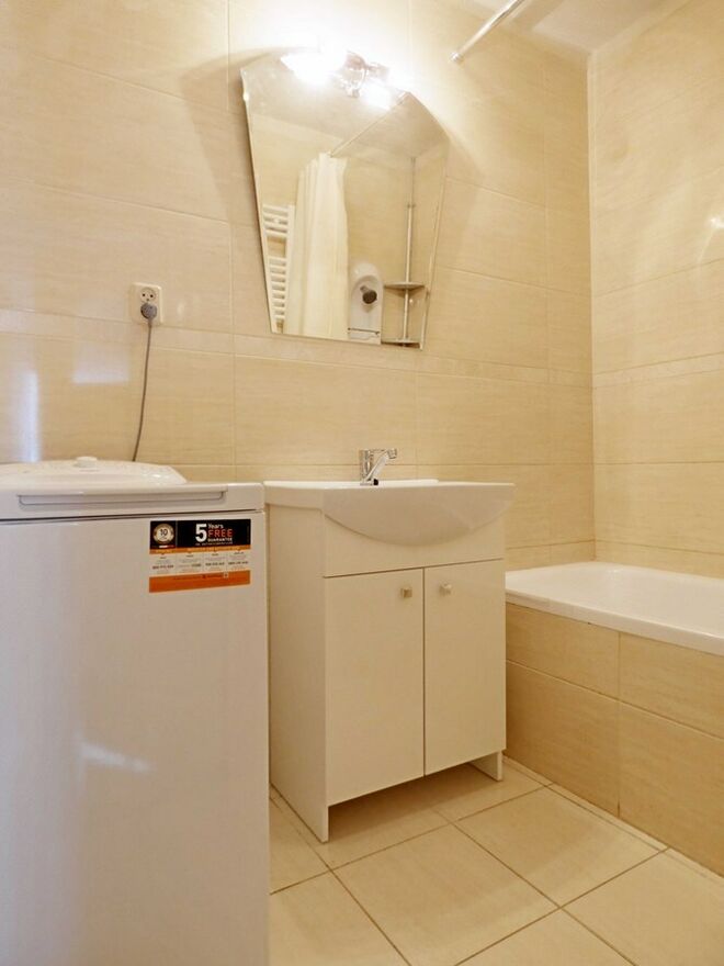 Łazienka: wanna, pralka, umywalka